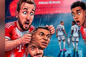 皇马旧将何塞卢转发趣味赛前海报,内容为拜仁绑架了姆巴佩,但揭开面具发现是何塞卢,而姆巴佩和维尼修斯带走了欧冠奖杯。何塞卢为海报配上了笑哭的表情符号。