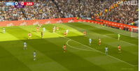 比赛第4分钟,曼城禁区内进攻,谢尔基的射门经过折射击中远端立柱弹回,被拉亚没收!